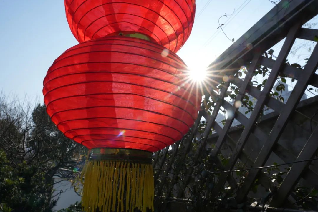 真如公园内已经悬挂起了一些喜庆的灯笼装饰,一派祥和,成串的灯笼在冬日阳光的照射下显得更加艳丽。