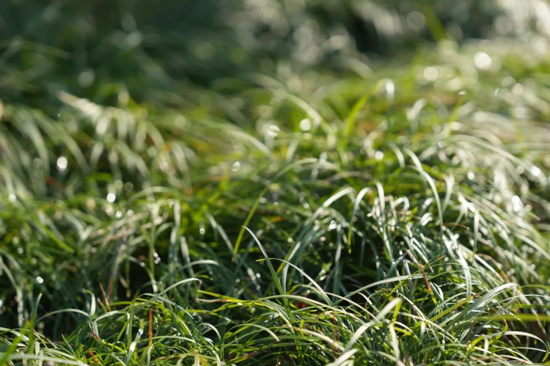 9点多随着太阳上岗,气温回升,花丛间、草坪上白霜已经逐渐解冻变成露珠,在太阳的照射下显得晶莹剔透。