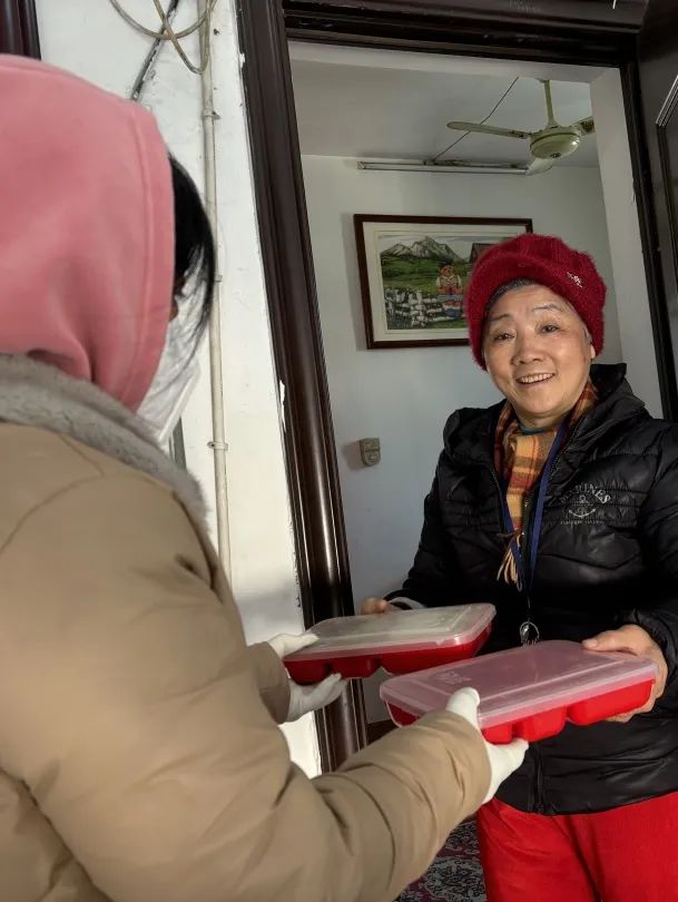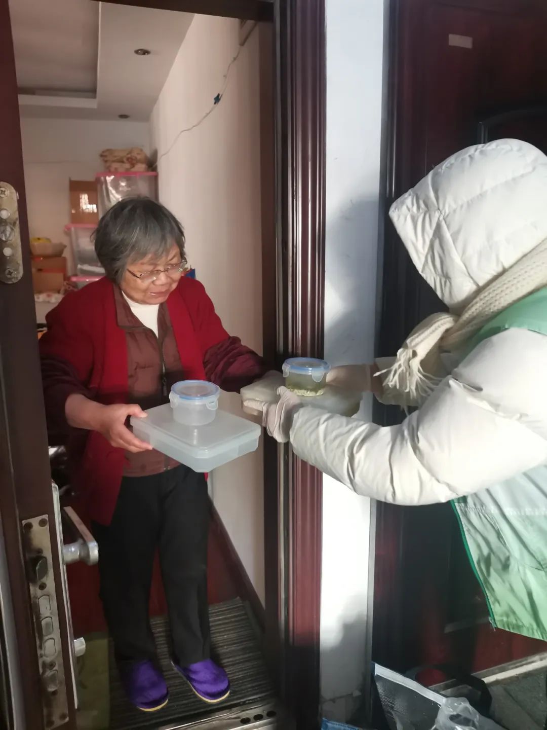 针对孤老、残疾等特殊困难群体,高境一村一居开展上门结对帮扶行动,关心了解老人们的防寒物资准备情况,倾听诉求,提醒他们做好防寒防冻措施。居委社工及志愿者化身送餐员,为社区内的重点人群提供上门送餐服务。为了让老人能吃上热气腾腾的饭菜,送餐员对每一份餐食都进行了精心保温处理,通过保温箱、保温袋等设备,确保送到老人手中的餐食依然保持着热度。社区合伙人和社区党员代表也纷纷加入关爱队伍,互帮互助共御寒冬,为老人们带来了实实在在的温暖。