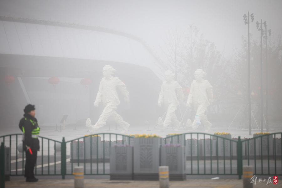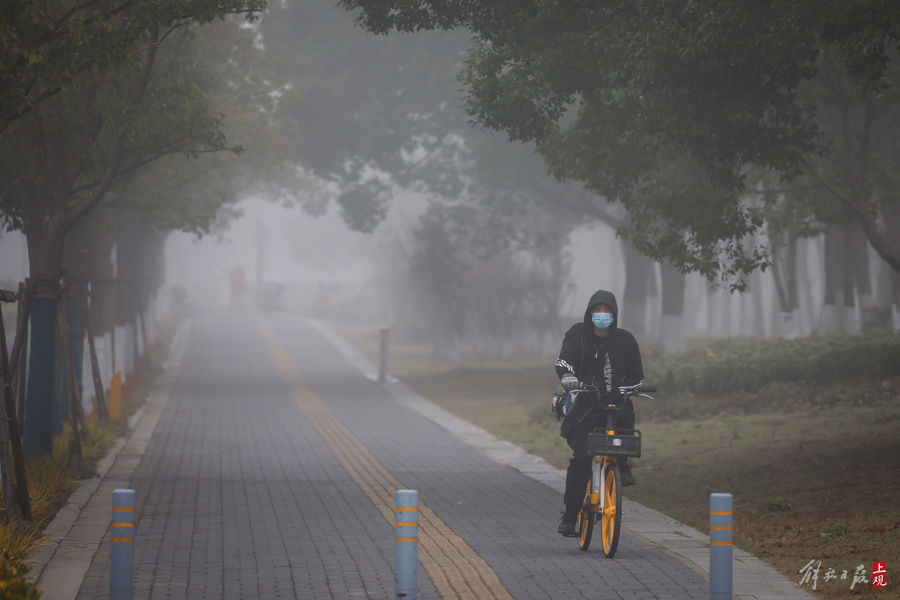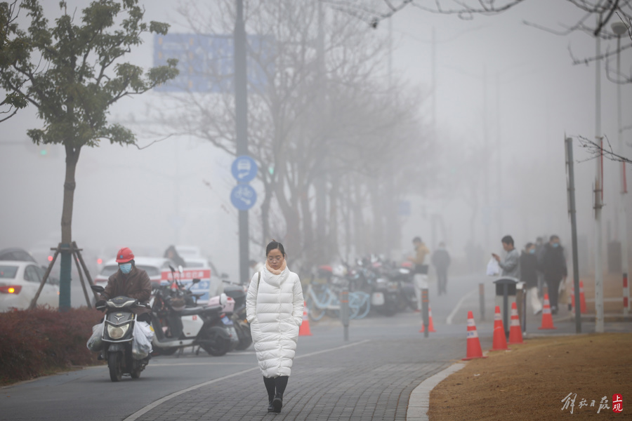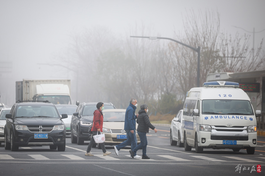 申城今晨大雾弥漫,郊区橙色预警高挂