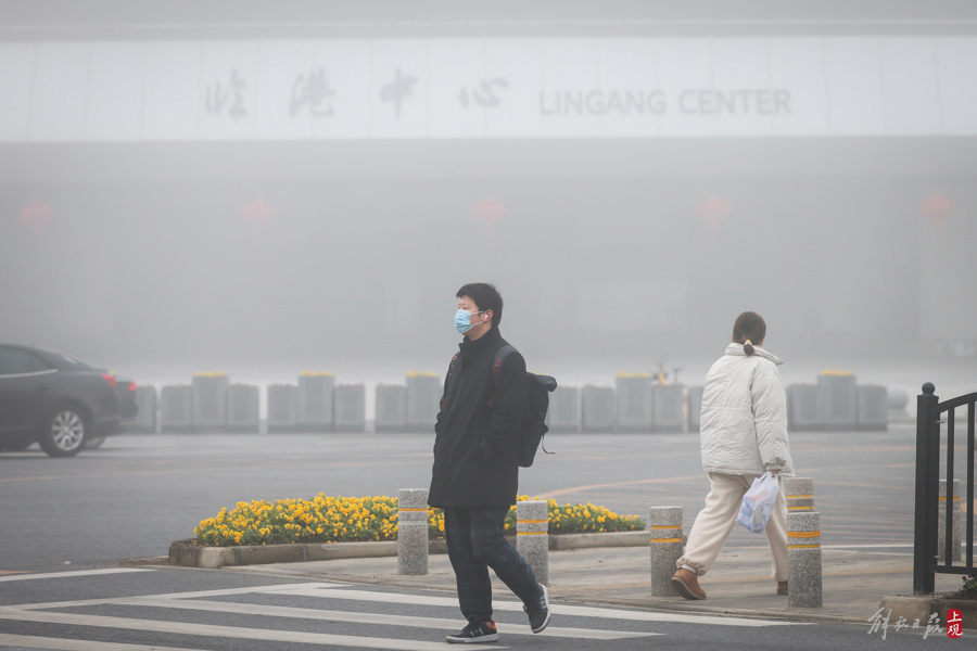 2023年12月29日清晨,位于临港的海港大道雾气蒙蒙,出现能见度小于200米。