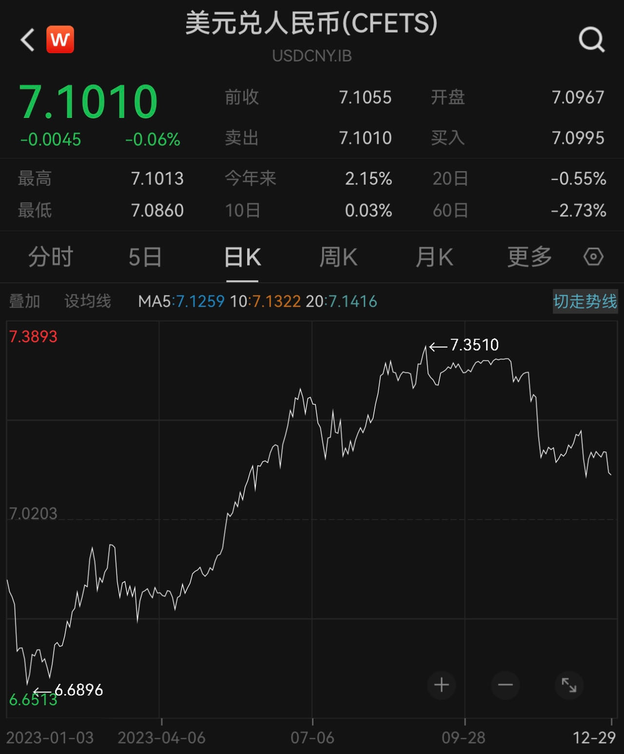 2023年最后一个交易日,人民币对美元即期汇率延续了前一交易日的升值势头。