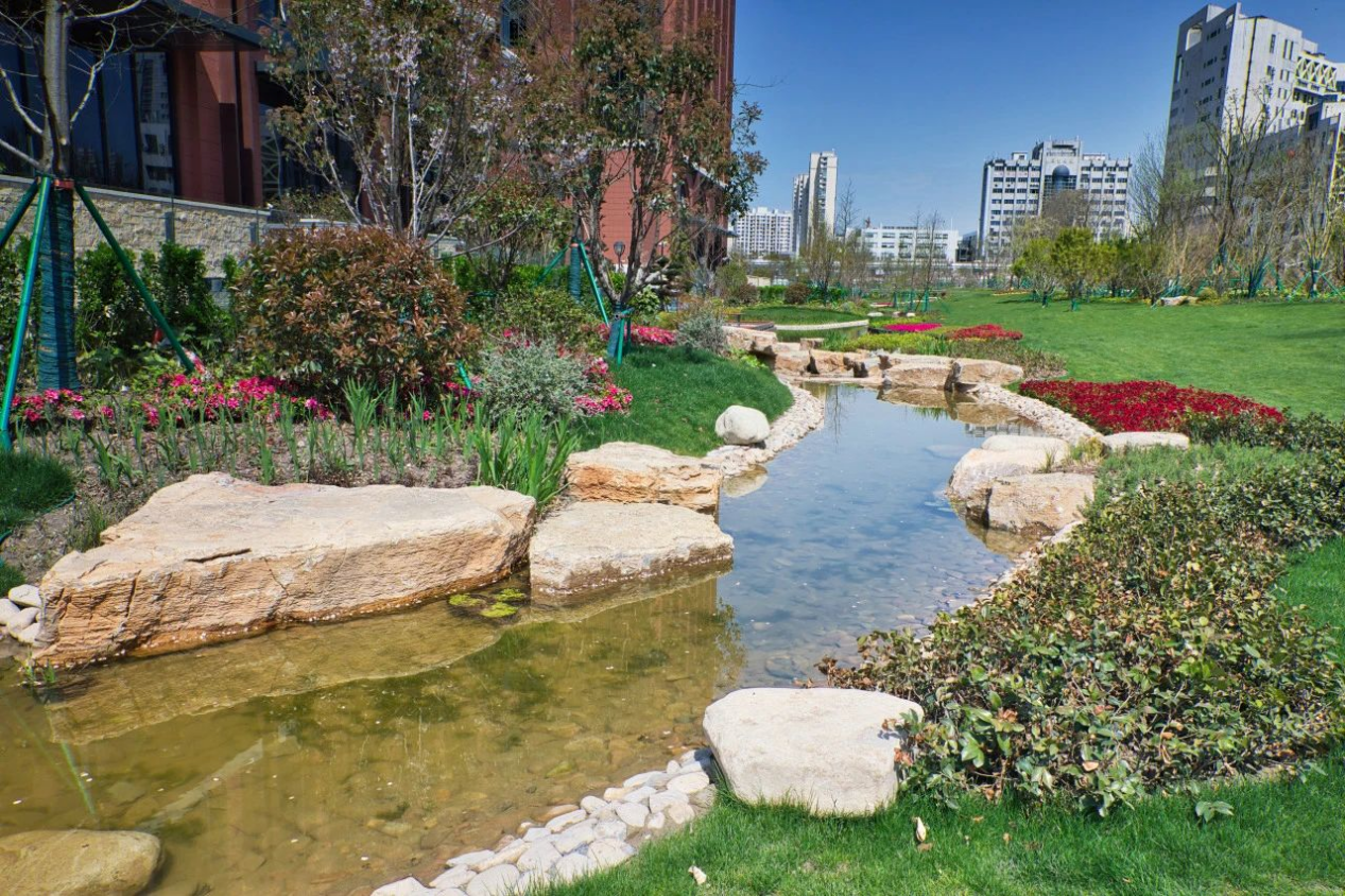 项目通过可再利用材料、循环材料,采用绿色认证建材、中心景观庭院与外墙垂直绿化结合的复层立体绿化、钢结构加固、节能节水、楼宇自控等技术策略,打造“健康、舒适、人文”的办公环境,配备2.3万平方米的绿地水景,让租户真正获得花园中办公的生态体验。