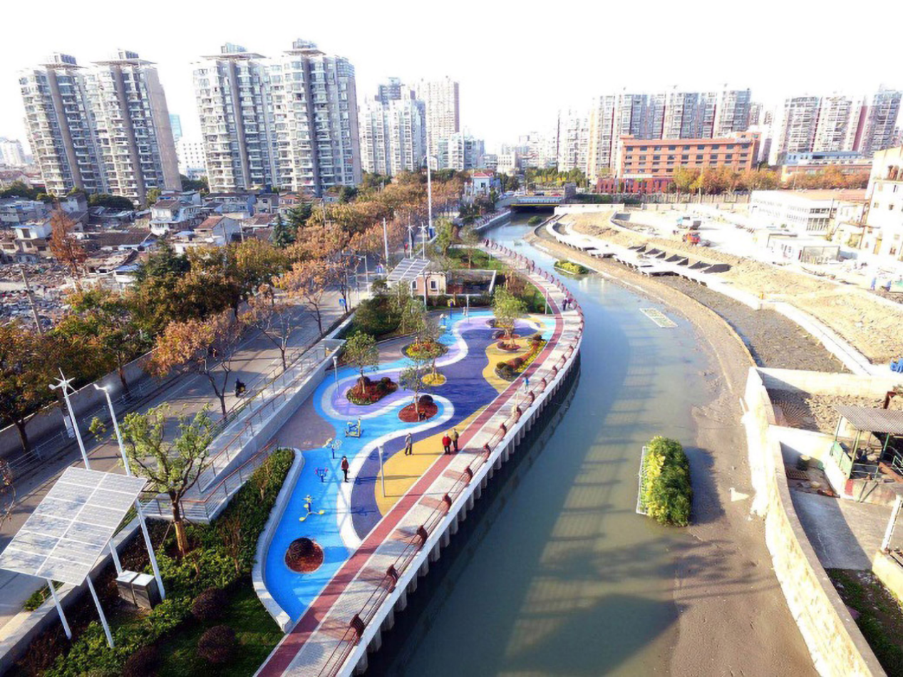 同时,项目将进一步改善水环境:杨树浦港滨水景观、建设市民健身步道等滨水绿地空间将得到提升;眉州路公共绿地结合生态水景、竖向地形设计等,将因地制宜落实海绵城市设计理念。