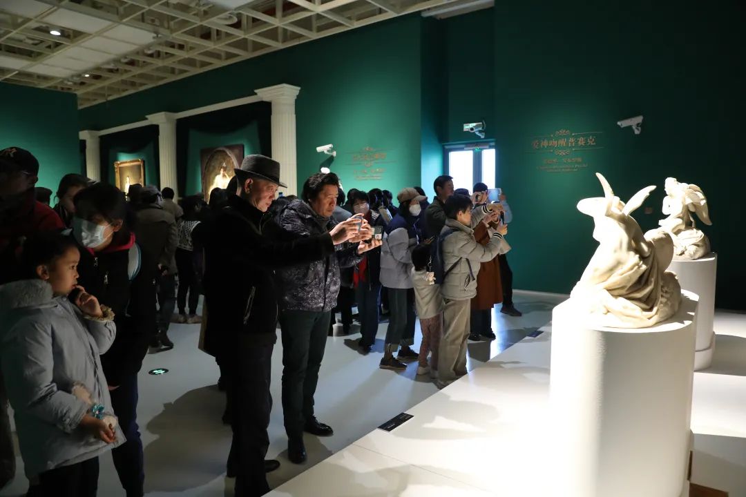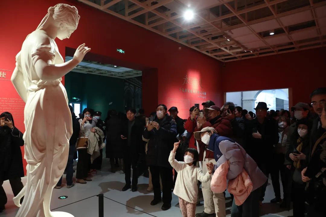 置身于展厅内,观众们在古朴典雅的罗马柱间漫步,时空与色彩交织错叠,仿佛走进了可以随意穿梭的人类艺术殿堂。从新古典主义到浪漫主义、现实主义,数十件欧洲经典雕塑名作一一呈现,精美绝伦,纤毫毕现。漫步于大师名作之间,观众们不禁感叹人的身体如此完美和谐、神态如此真实生动、情感如此充沛饱满……