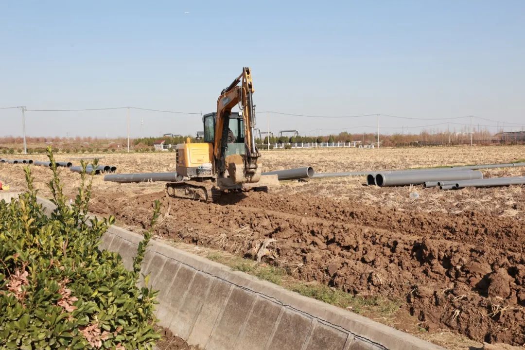 时近腊月,寒风凛冽,记者走进高标准农田建设现场,这里却是热火朝天。各项工程正如火如荼地进行着,数台挖掘机正在挖掘沟渠、平整边坡,工人们在沟渠中调整管线......