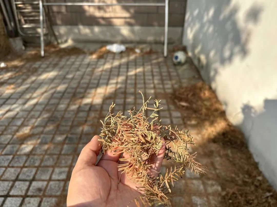 王阿姨平时喜欢在院子里种种花草,晾晒衣服。她告诉记者,现在每天院子里都是一地落叶,她家的衣服也不敢晾出来,因为一旦针织衫、被褥被针叶粘上,清理起来耗时费力;整栋楼朝南的窗户也不敢打开,生怕落叶飘进屋内“惹祸生事”。而且,水杉的叶子落下后很快就会变脆,粉碎的落叶很容易堵塞各种管道。“我们楼内一户居民停在楼下的车辆,因顶窗管道被落叶堵塞导致雨水反渗,修车花了6000多元,只能自认倒霉。”