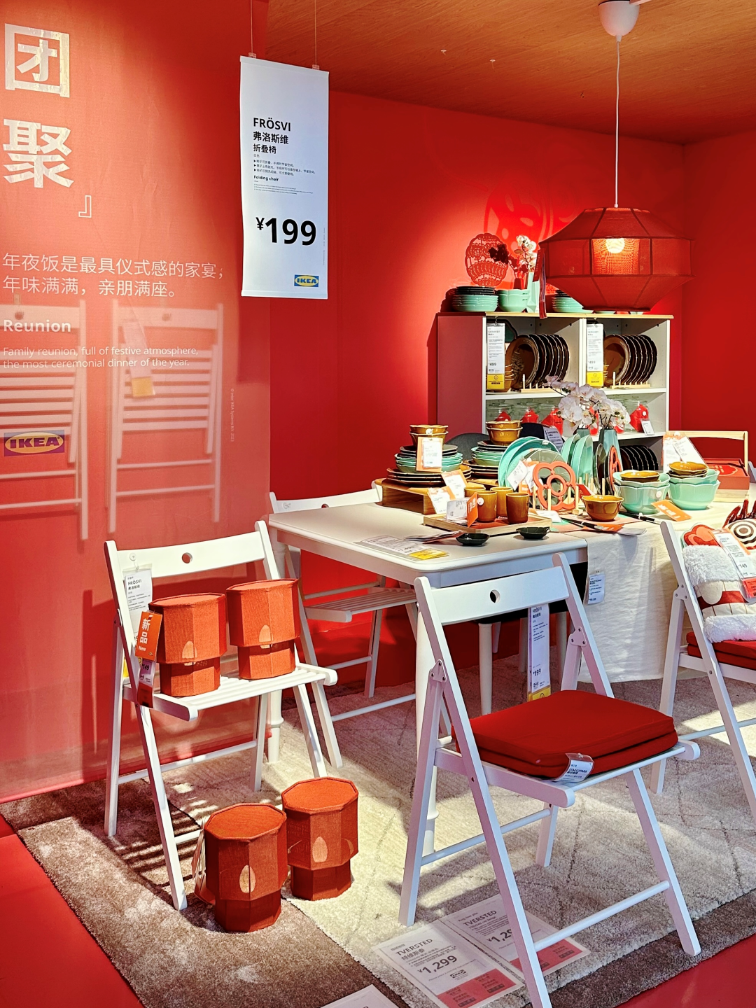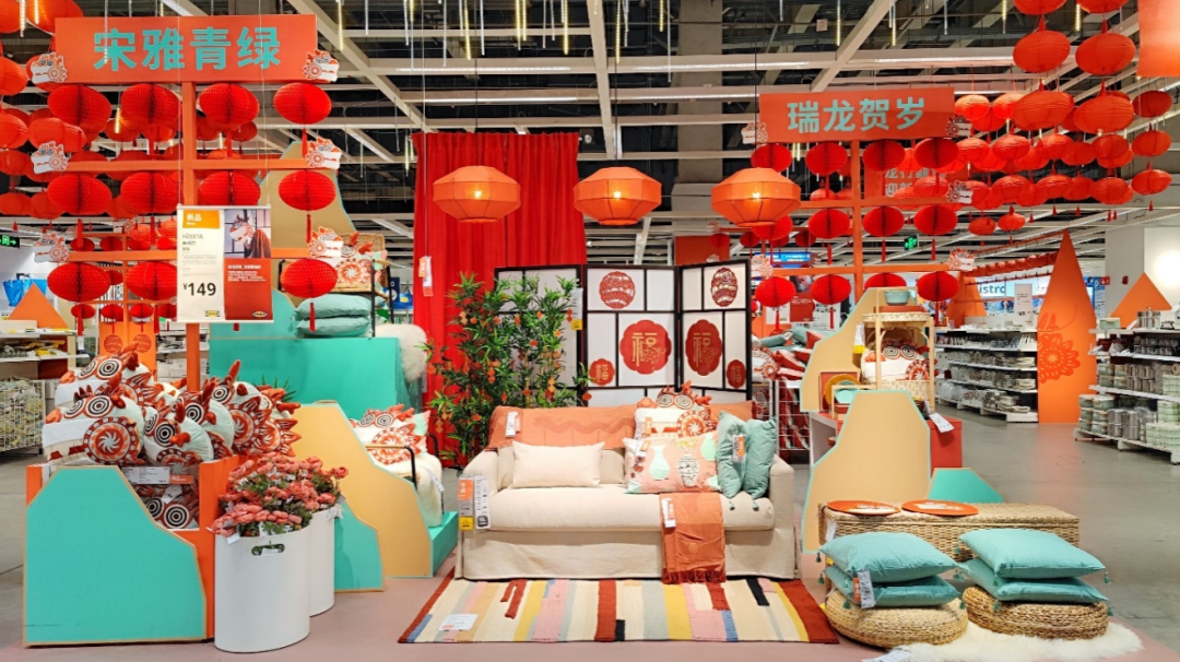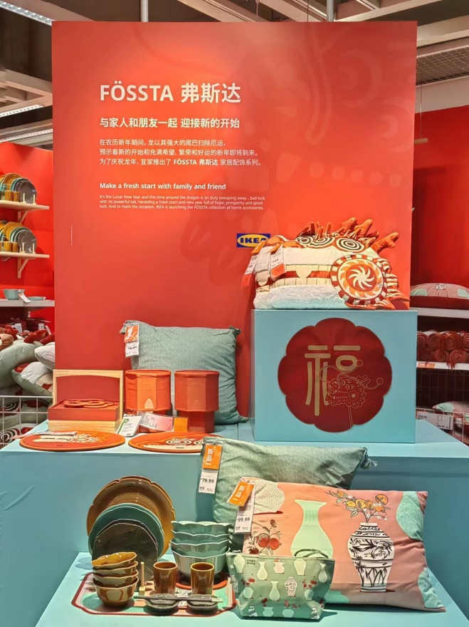 位于徐汇区漕溪路126号的宜家商场内已装扮一新,新春市集尤其引人注目。今年的FÖSSTA弗斯达系列推出了30款简约别致的餐具套组、年味浓郁的装饰品、家纺及家居配件,其灵感来源于宋代文化和具有美好寓意的舞龙、柿子、石榴等中国传统元素,旨在为市民们营造独具一格的家居空间与温馨氛围。