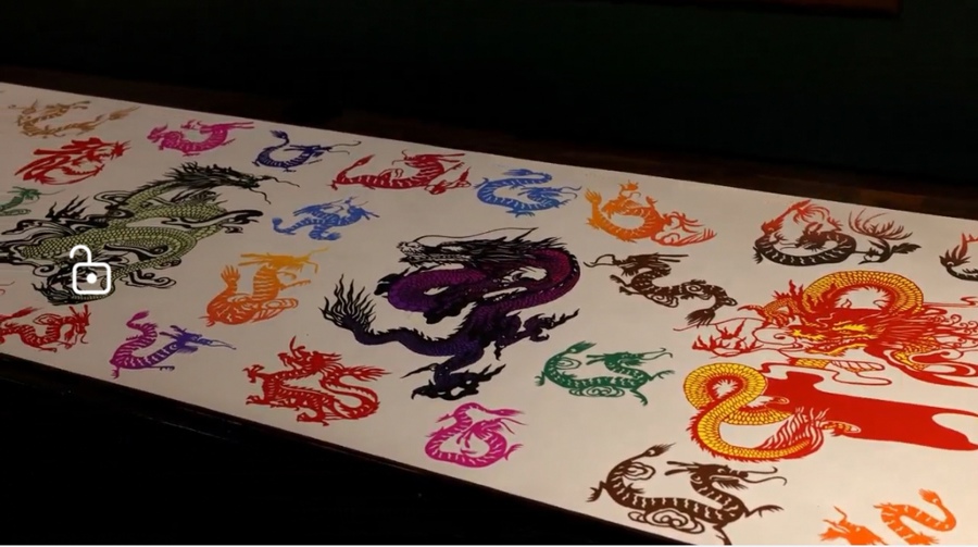 2023年9月初,杨红兵在谋划新一年剪纸主题时,想到自己作为龙的传人,更应该做点有意义的事,就萌发了与工作室的18名学员一起创作《百龙图》的想法。于是,她开始四处寻找有关龙的图案,特别是9条大龙,更加需要用心用情。