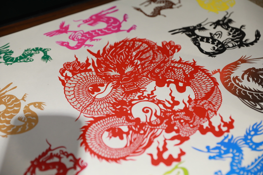 龙年新春佳节来临之际,在上海市金山区山阳镇,海阔文创园一间展览室内,年近六旬的剪纸达人杨红兵正笑呵呵地向参观者介绍她和学生们共同为龙年新春创作的《龙腾盛世——百龙图》。