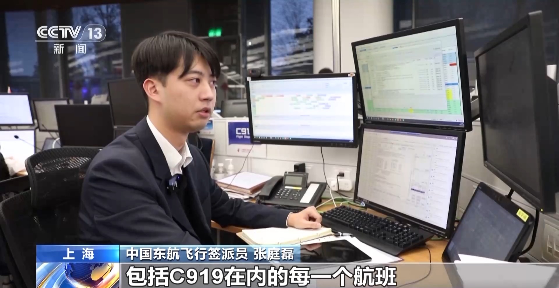 中国东航飞行签派员张庭磊:安全是我们的第一要求。签派员也叫做“地面飞行员”,包括C919大飞机在内的每一个航班,我们都要参与制定和申请飞行计划。