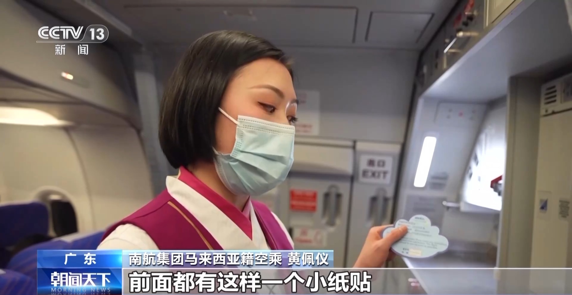 南航集团马来西亚籍空乘 黄佩仪:现在又到了春运的时期,我们领资料箱的时候,特地问一下能不能多给我们两包,尽量保证每个睡觉的旅客,前面都有这样一个小纸贴。