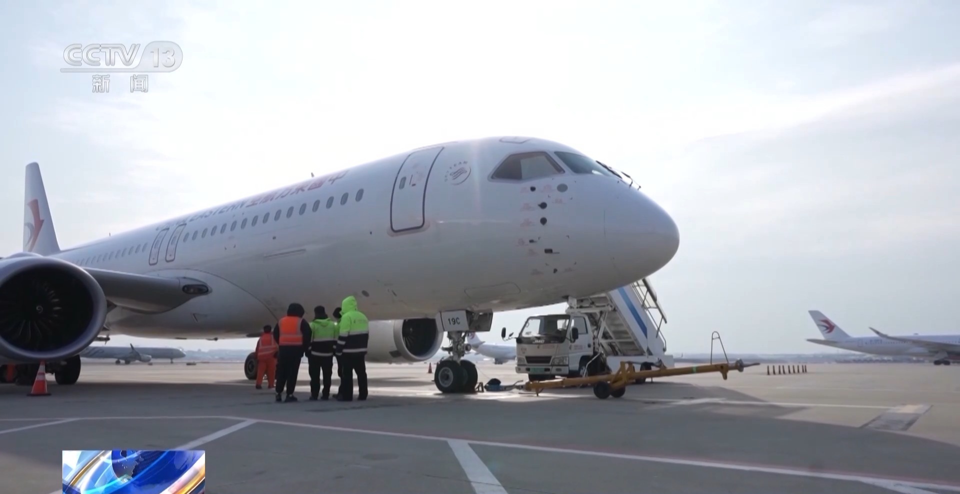 今年春运,4架C919国产大飞机首度服务春运,在京沪、沪蓉航线执飞。