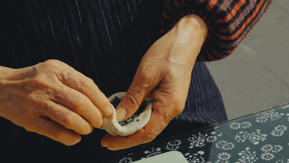 在物资匮乏的年代,做塌饼几乎是顾村农家主妇必备的手艺,给出门的丈夫准备点心,充饥果腹、冷热皆宜,能够随身装的乡味恐怕是身边最贴心的存在。而在孩子们的眼里,也是喜欢且容易得到的零食,吃起来香甜酥脆,是不少顾村人儿时记忆里的味道。
