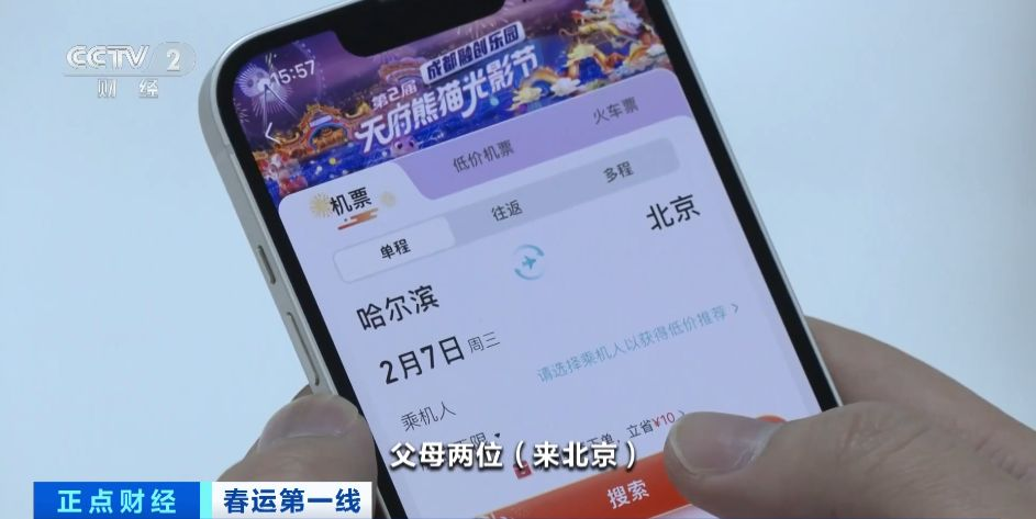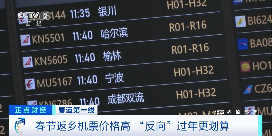 旅客 李宇:在腊月二十七、腊月二十八,我单程回哈尔滨的机票价格是1800元,父母两个人来北京,往返的机票价格仅是1600元,综合考虑后选择“反向”过年的方式,同时感受一下北京过年的气氛。