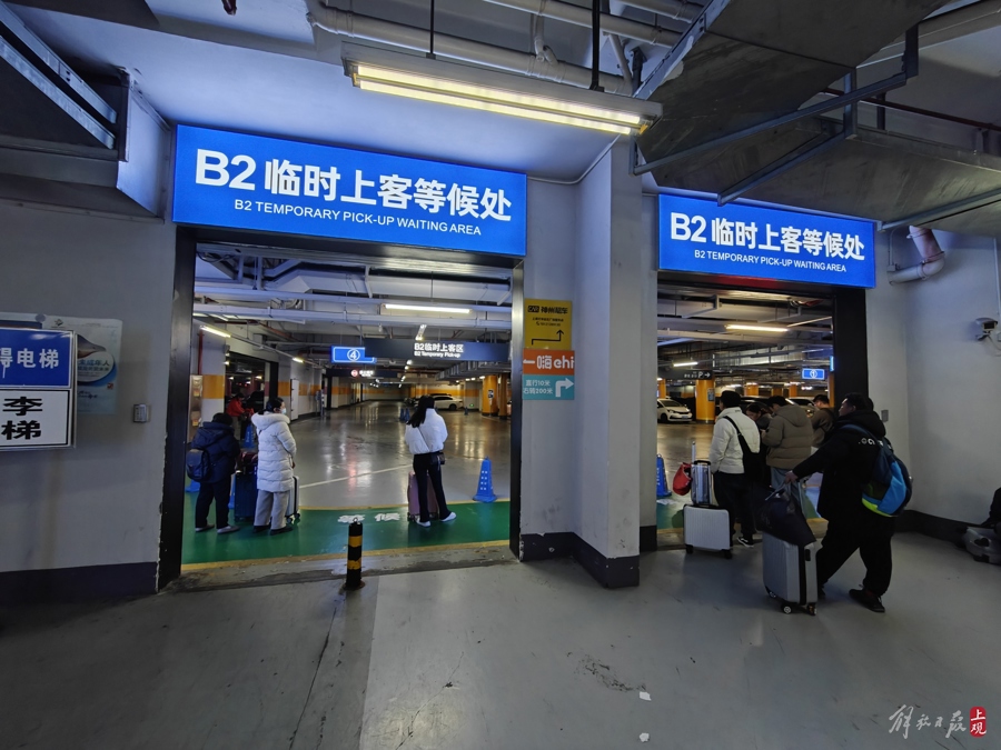 北广场地下2层停车场与出站通道相接处,是“B2临时上客等待处”,十多个人站在这里,盯着手机,焦急等待司机接单。一名外地口音的女士叫住记者寻求帮助,说她刚才在滴滴平台打到了一辆出租车,可是司机接单后找不到她,电话沟通了好一会,只好取消了订单。在记者的帮助下,她在上车点处一字不差地输入了“B2临时上客等待处”,下了单。一段时间后又有一辆出租车接了单,可司机快到时,双方沟通又犯了难,“我就在B2停车场临时上客等待处!”可出租车司机一直说不知道临时上客点在哪……