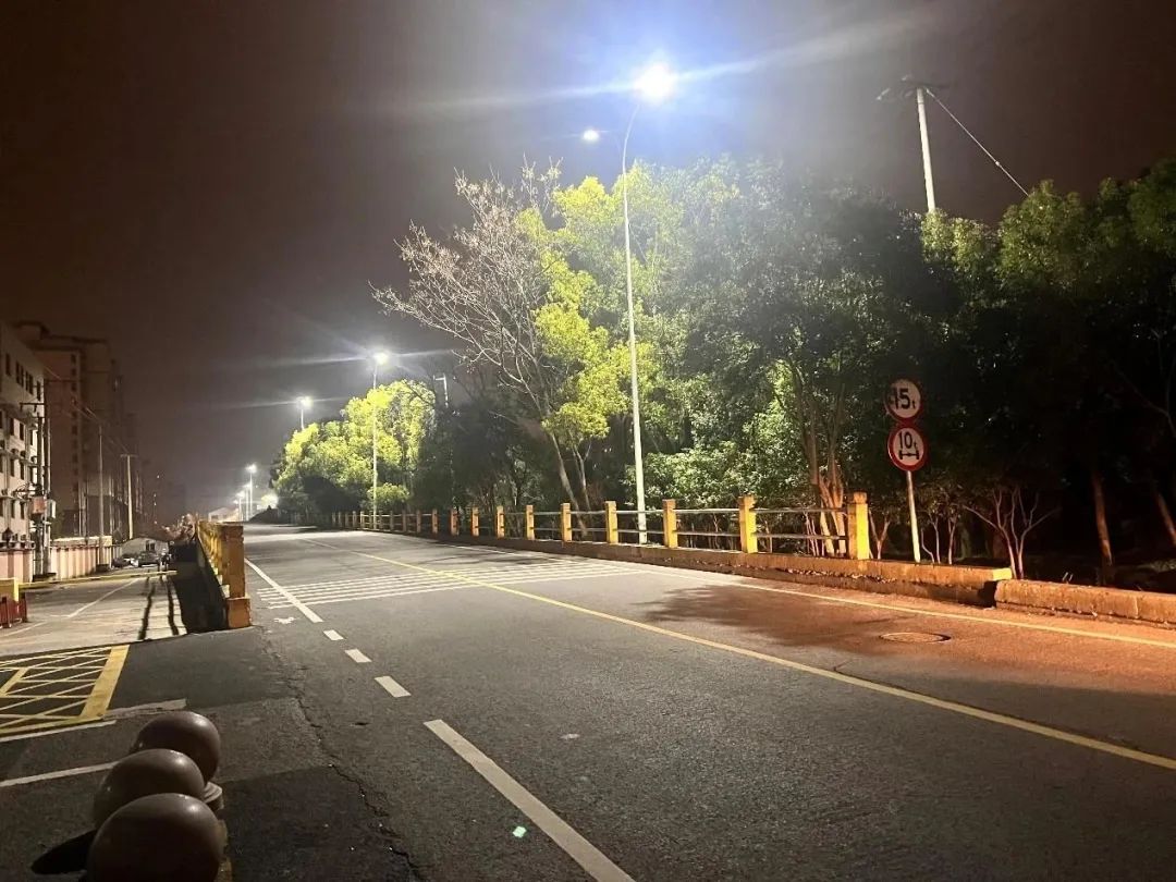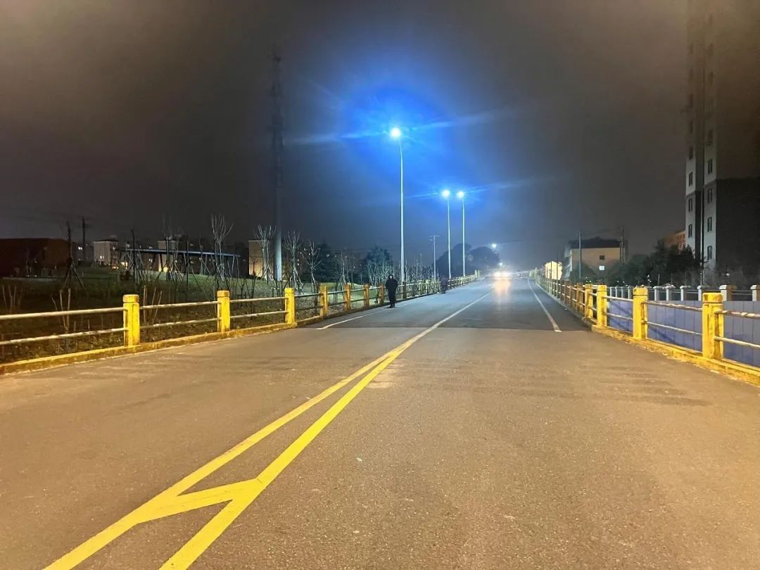 随着天色渐暗,闵行区浦江镇叶家桥路三鲁河桥上6盏崭新的路灯准时亮起,为行人和车辆照亮了道路,提升了居民夜间出行的安全性。