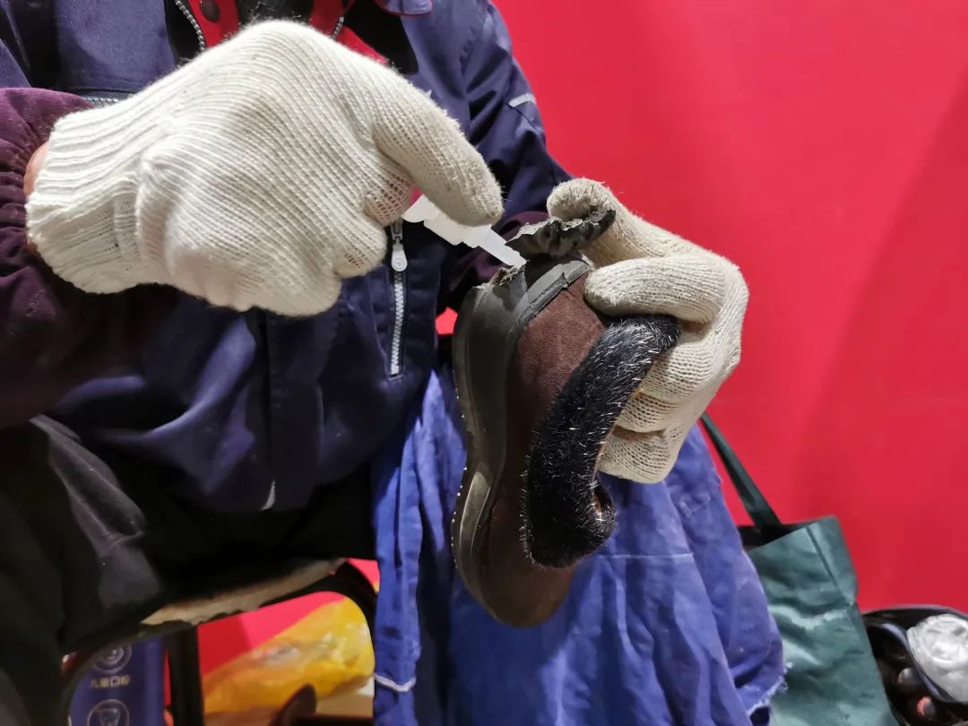 像我这样年纪大的人,好一点的鞋子坏了舍不得扔掉,所以修鞋子是必要的。修鞋师傅很认真,活干得很地道。
