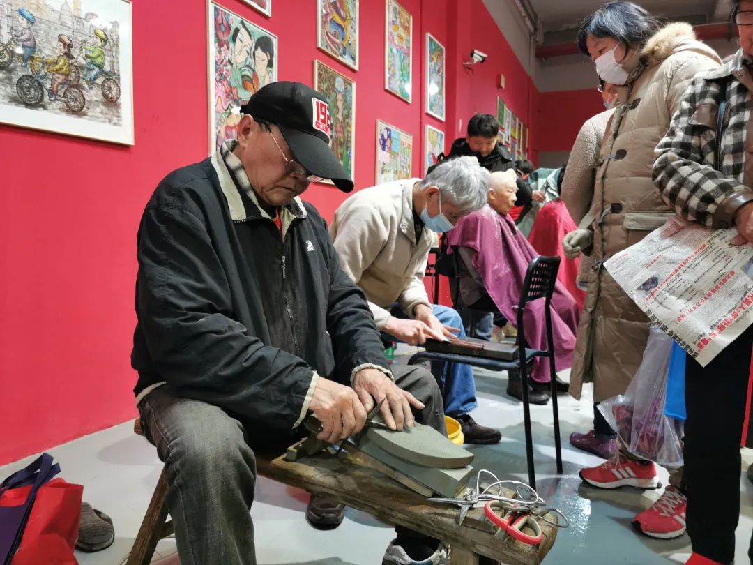 在现场数十个服务项目中,以理发、磨刀、修鞋子为代表的一些“老行当”尤其受到老年朋友的青睐,成为“冷门中的热门”。