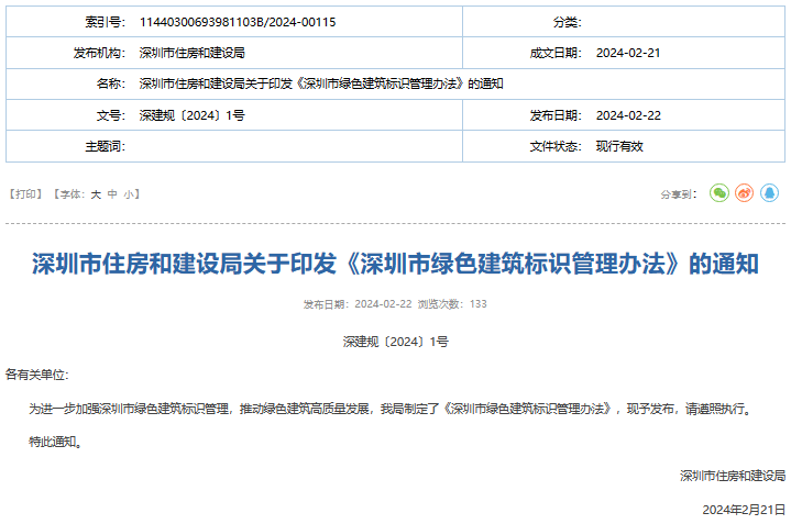​《深圳市绿色建筑标识管理办法》印发