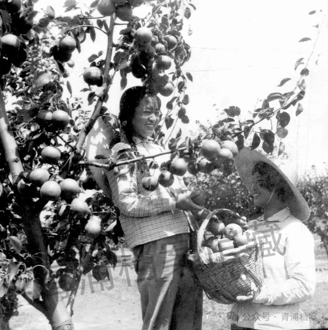 1972年,徐泾园艺场妇女职工摘梨子的场景