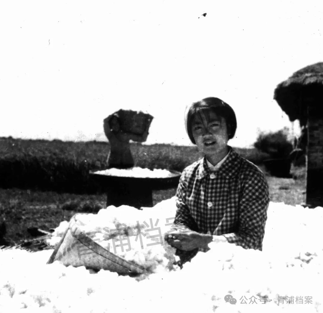 1964年,重固公社新桥大队妇女晒棉花