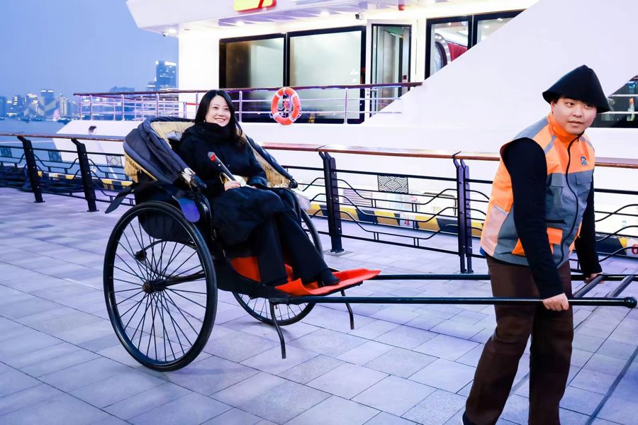 与去年的微醺派对”不同,今年升级版的派对2.0版从一开始就给了市民游客不一样的感受。游客们来到码头,首先映入眼帘的是一辆辆老上海风格的复古黄包车,等候在此的车夫将游客一一拉到登船口,仿佛穿越到百年前的上海。