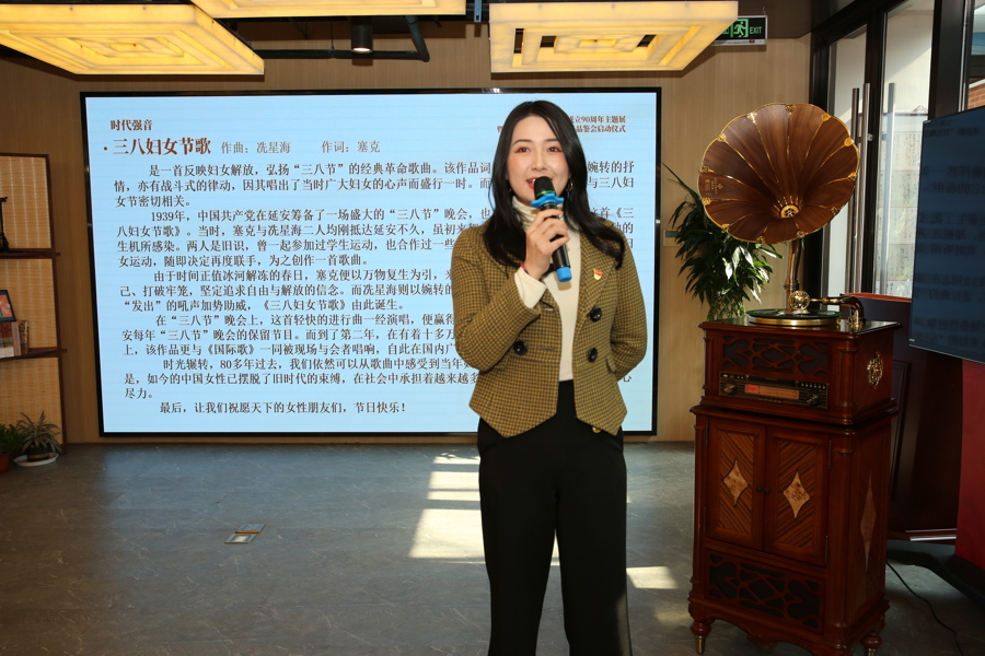 除了浏览图文并茂的数字展陈,观众还可以通过扫描电子展板上的二维码,收听《毕业歌》《抗敌歌》《开路先锋歌》《新编九一八小调》《打回老家去》等一批经典左翼歌曲,且大部分系早期版本。现场还特别摆放了仿制的古董唱机以还原20世纪30年代的音乐场景,给观众以沉浸式的观展体验。