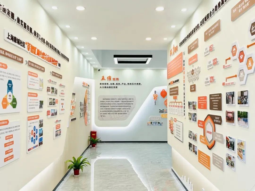 展厅分为7大板块,用一串数字浓缩展示了莘庄镇过去、现在和未来。通过图文结合的方式,讲述了莘庄镇党的历史和发展,以及各领域党建的做法和成效。