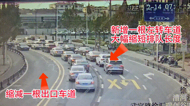 近日,上海市公安局交警总队路设处会同徐汇交警,对市民反映突出的两个堵点进行了“小改小革”,道路通行情况大为改观。
