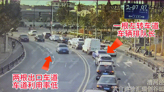 同样,对漕溪路蒲汇塘路的优化调整也立竿见影。漕溪路蒲汇塘路地处沪闵高架下匝道,是进入徐家汇商圈的重要路口,周边分布着上海体育场、四轨站点以及大量商业区、住宅和学校,日常车流量、人流量极大。