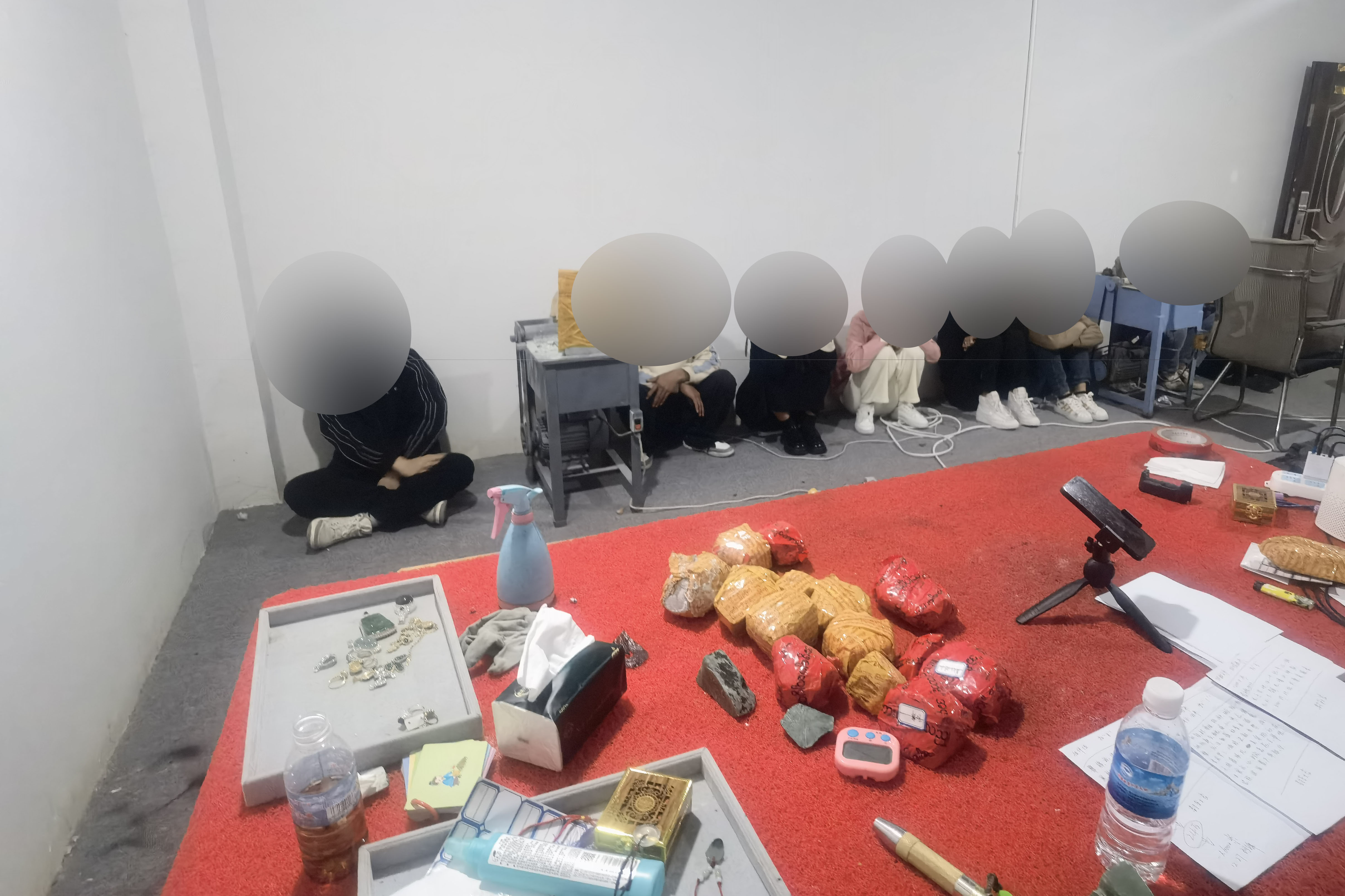 在云南当地,民警调查发现所谓的“森瀚珠宝店”并不存在,只是一个虚构的店铺。从已经掌握的嫌疑人身份信息入手,经过多天的走访调查,专案组在当地一个直播电商集聚的别墅区中发现了一栋可疑别墅,深夜灯火通明,还不时传出一阵阵切割石头的机械声,种种迹象表明这里就是诈骗团伙直播的窝点。