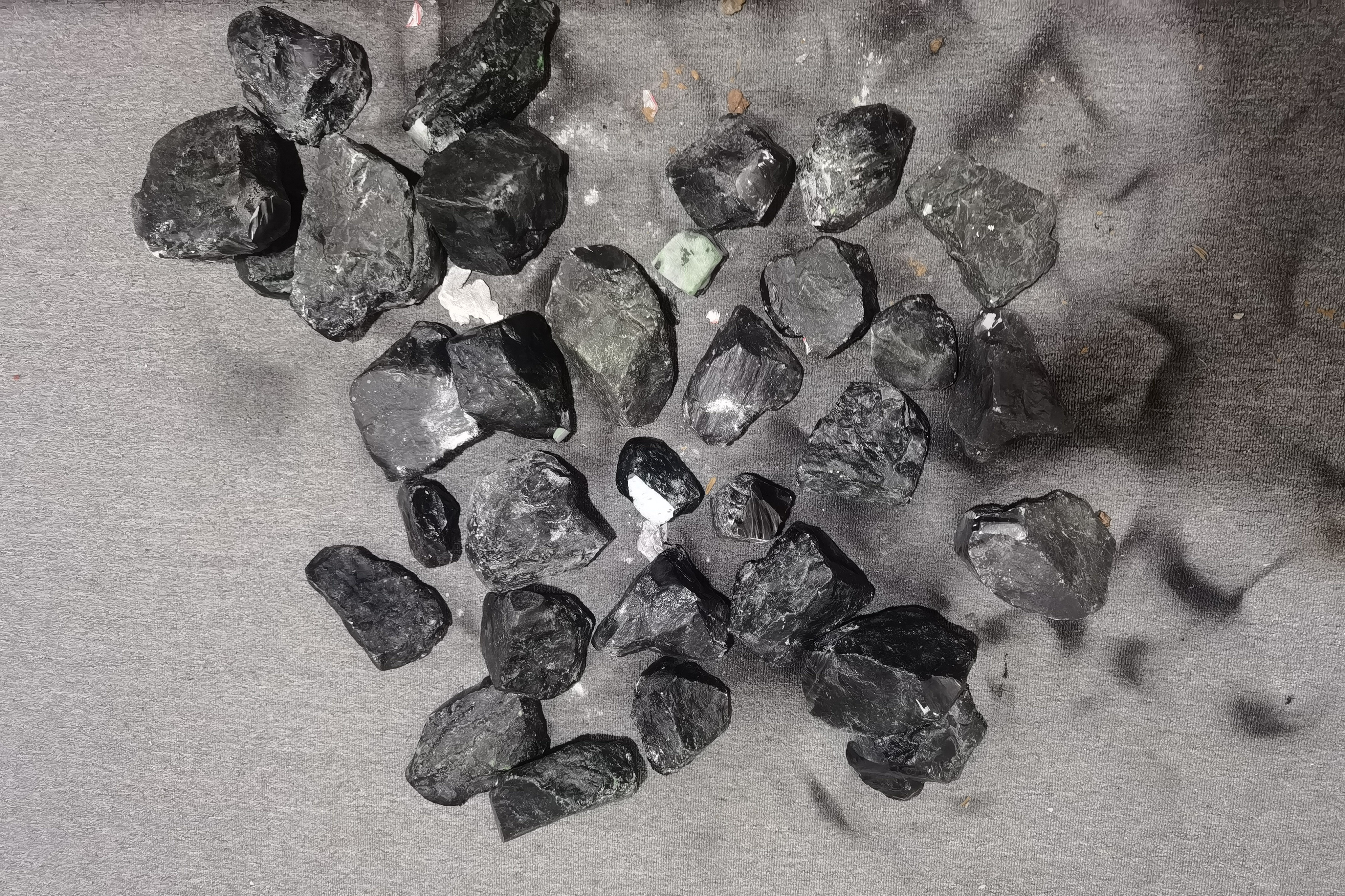 实际上,直播间使用的原石的表面和切开面都是油漆喷涂的,根据交易需要挑选相应原石出镜,从而操纵开石结果。事后重新补漆的原石又会回到直播间,真正做到了“零损耗”。