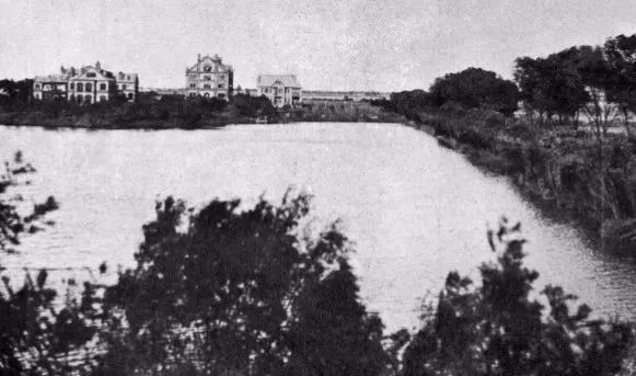 原沪江大学校门口的池塘被填,用做足球场
