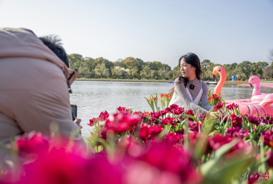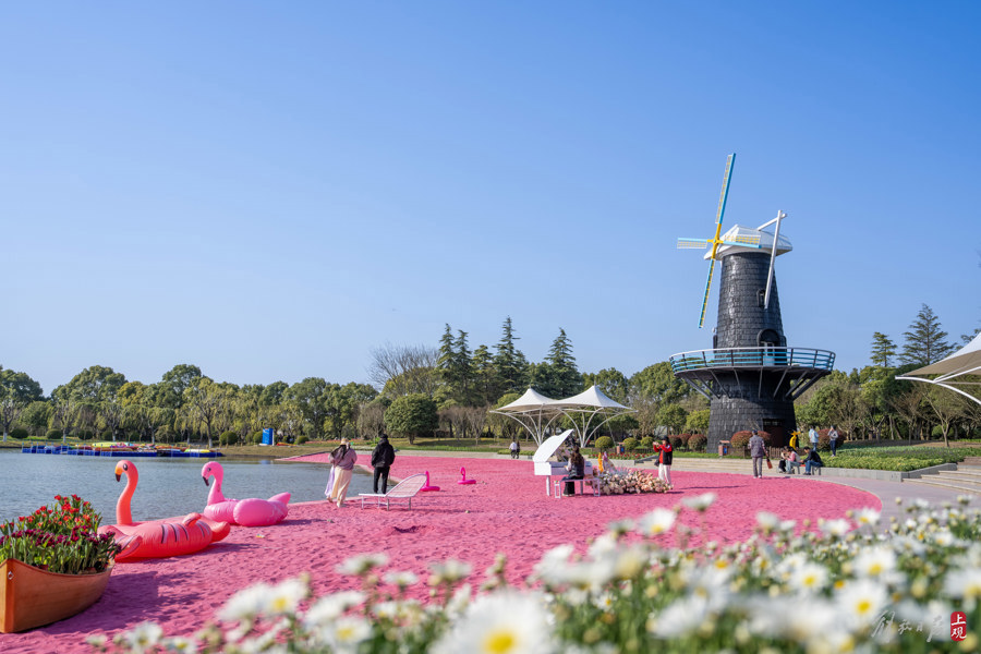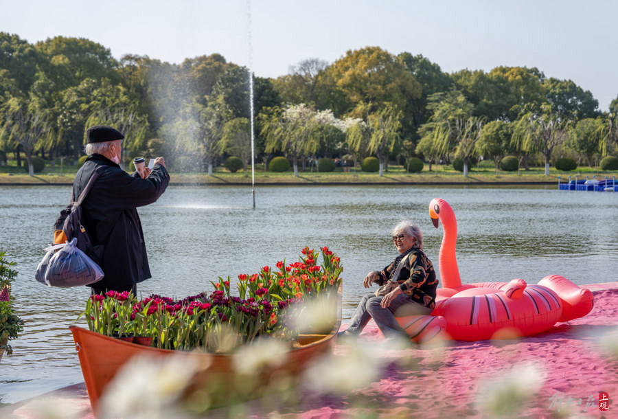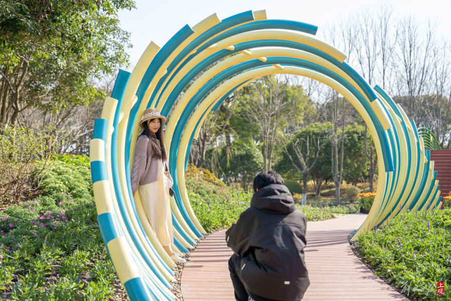 天气晴好,不少市民游客来到鲜花港打卡游玩。