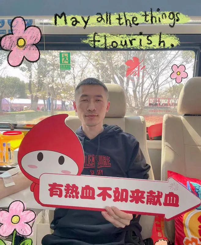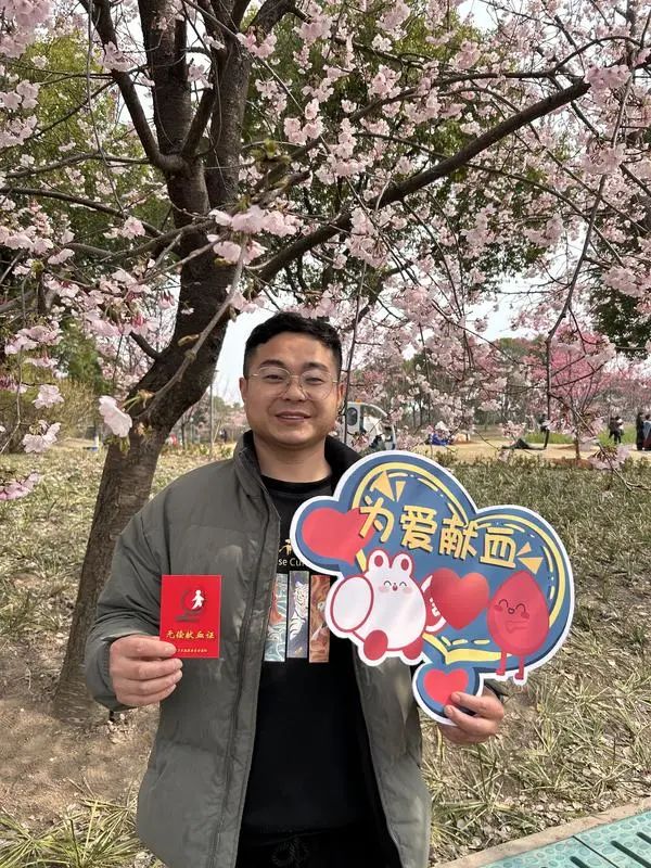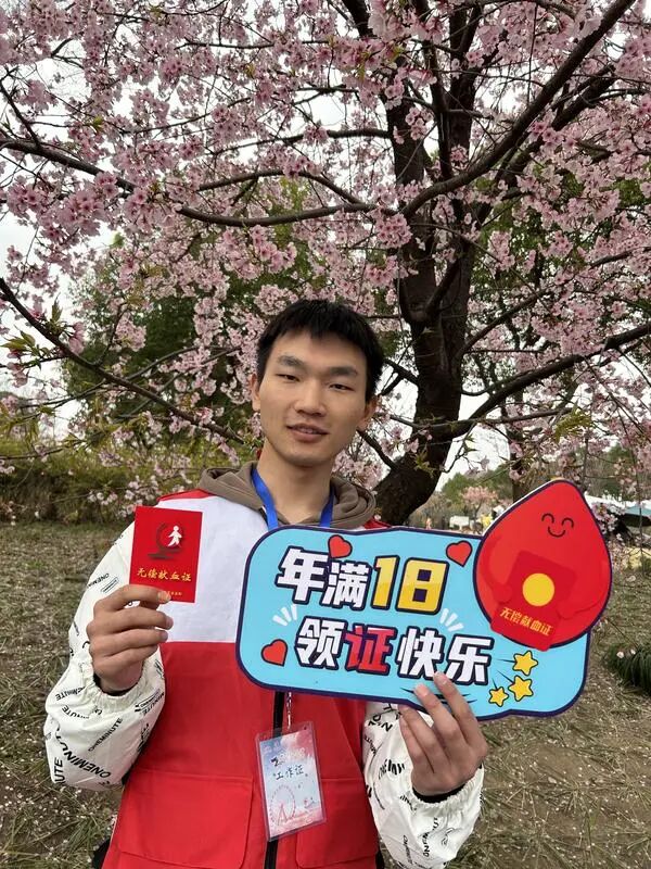 “今天陪爱人来看樱花,正好看到这里有献血车,就过来献一下爱心。”戴先生填写登记表后,通过测量血压、血液初筛等体检流程,成功捐献400毫升的全血。