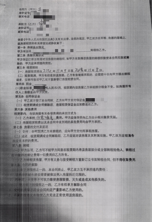 申某伪造的与房东8年期长租合同