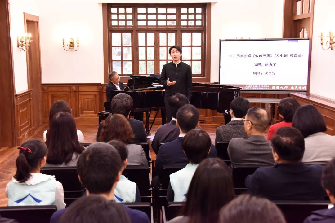 首场“致敬大师乐见文明”纪念黄自先生专场音乐会思政教育实践课上,上海音乐学院的青年学子们演绎了黄自先生的经典之作《玫瑰三愿》《思乡》《春思曲》,用悠扬的旋律向这位音乐泰斗表达崇高敬意。