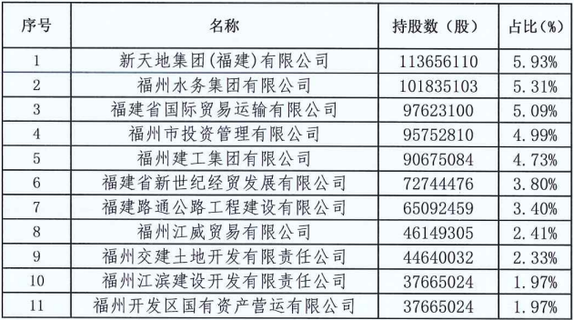 截至2023年12月末,福州农商行前十大股东