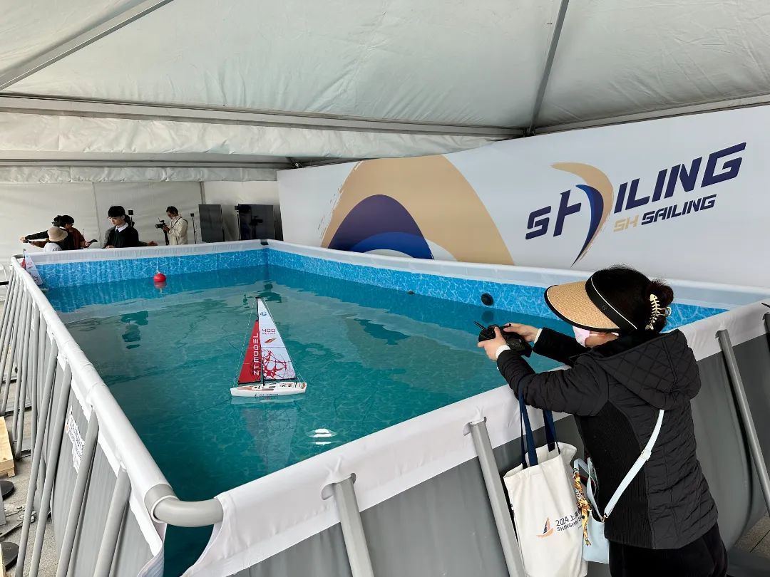 遥控帆船,用手柄操控帆船完成绕标回到终点,体验的观众直呼“不简单”!
