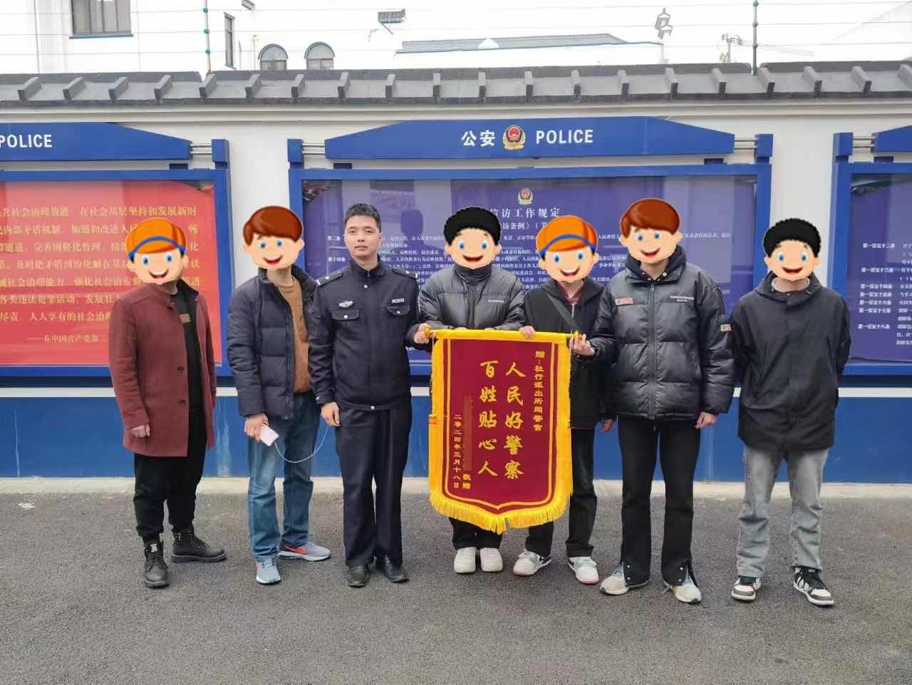 学生家长向民警送上锦旗表示感谢。