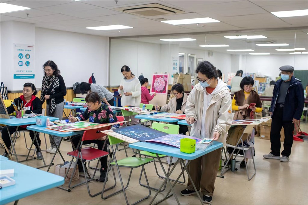 在闵行区群众艺术馆二楼,彩艺学堂重彩画班和“生肖龙”永生花烛台手作活动也火热开展。事实上,不仅仅在闵行区群众艺术馆,在闵行全区都能与“城市美育日”有一场春日里的美好邂逅,闵行区图书馆、博物馆,14个镇、街道、莘庄工业区文体中心等同步推出“玉楮流芳——上海博物馆藏宋元珍籍主题讲座”“美育之海昏侯黏土DIY”“‘被唤醒的记忆’2024年吴泾镇人文摄影展”“‘香遇’新虹非遗系列活动”等43场活动,让广大市民在家门口就体验到闵行美育文化盛宴。