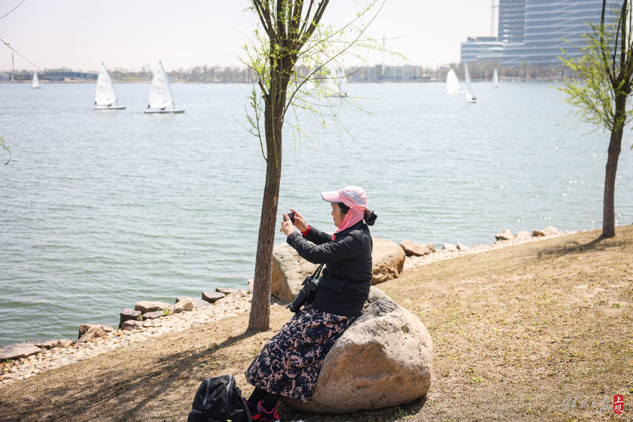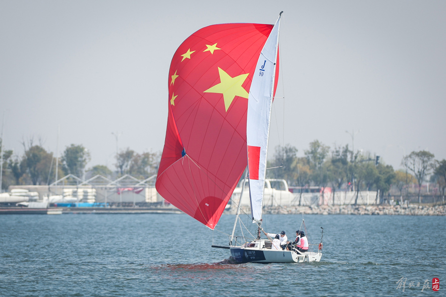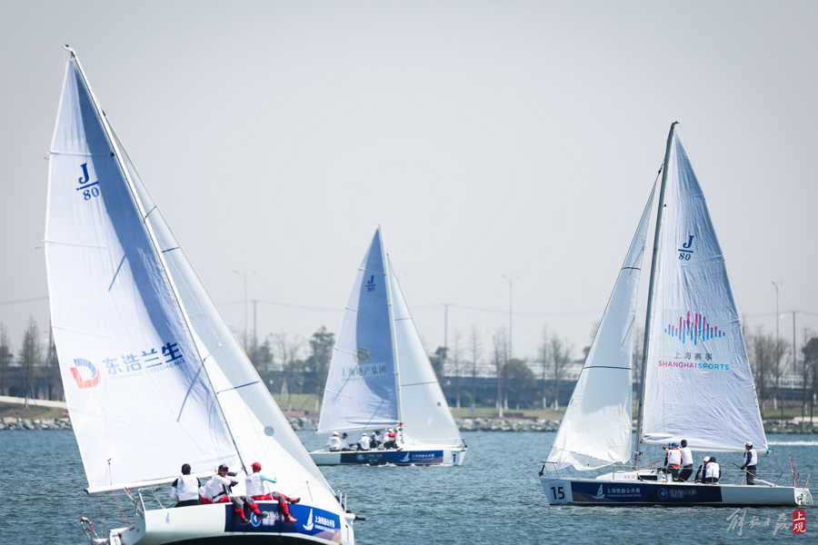 和煦的春风、闪亮的湖面,帆星点点,不少帆船爱好者从四面八方赶来观赛。