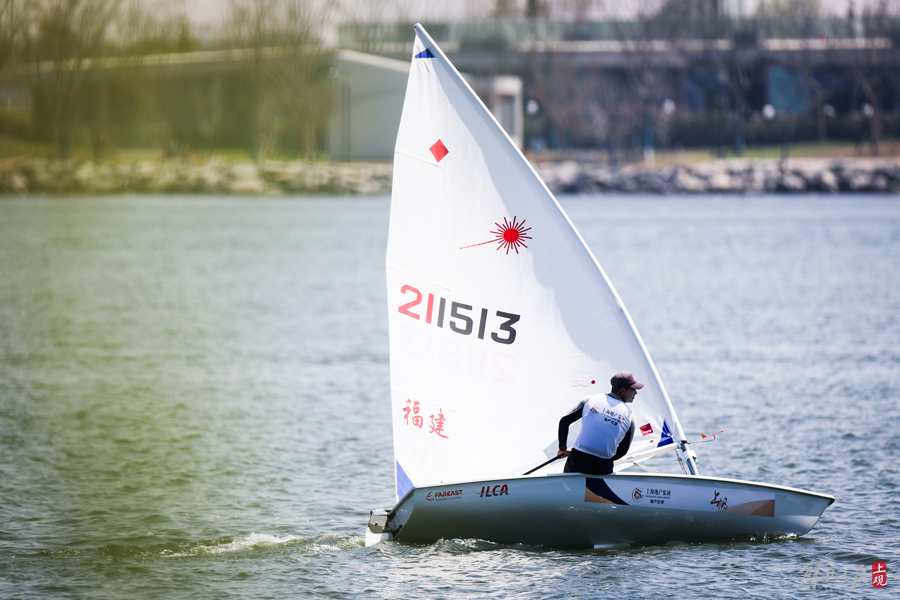 2024年3月29日,上海帆船公开赛进入第一个比赛日,35条ILCA6级帆船在滴水湖率先扬帆。