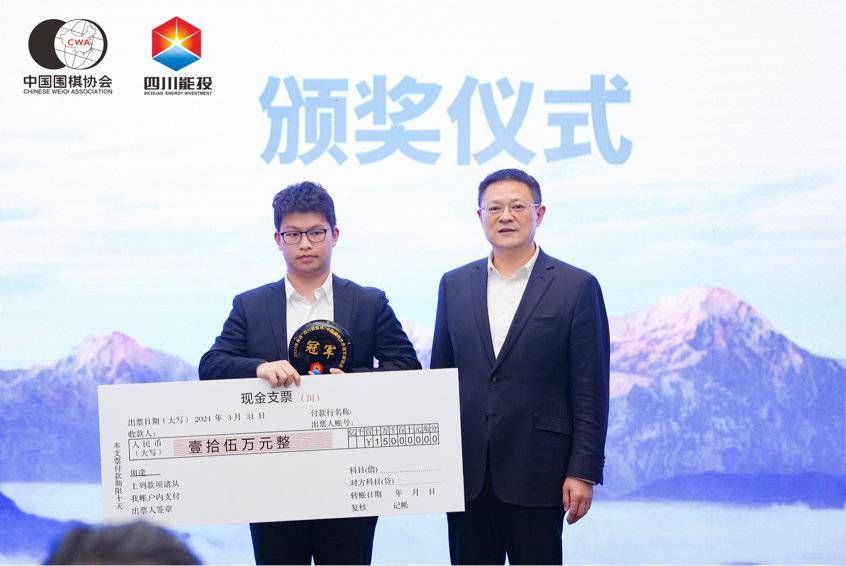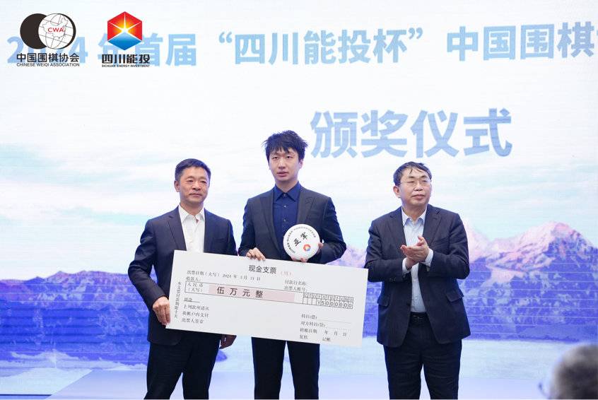 赛后举行了颁奖仪式。四川能投集团党委书记、董事长王诚为冠军谢尔豪颁奖。棋圣、中国围棋协会名誉主席聂卫平、四川能投集团党委副书记、副董事长、总经理牟俊为亚军党毅飞颁奖。