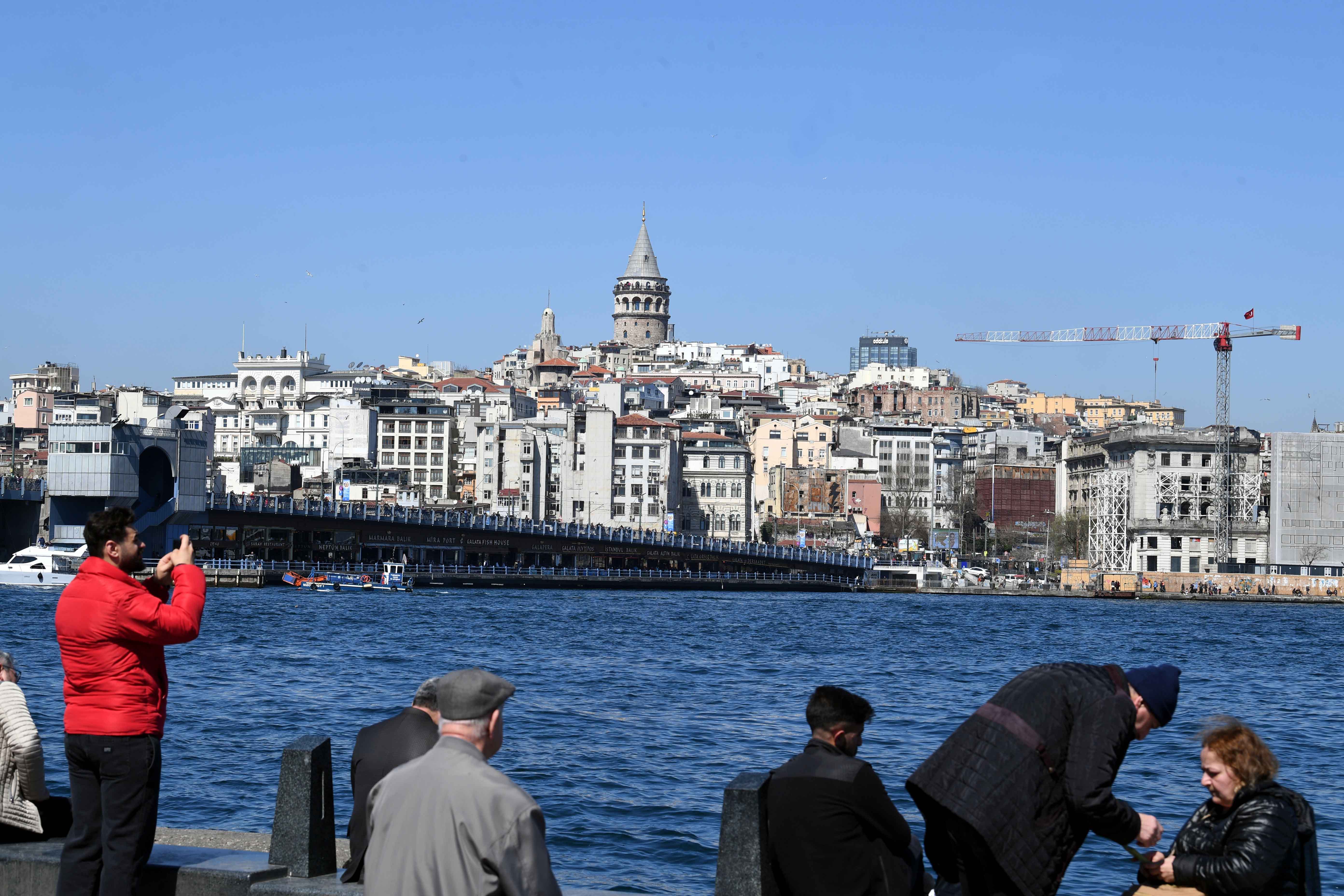 2023年3月27日,人们在土耳其伊斯坦布尔博斯普鲁斯海峡边休闲。新华社记者沙达提摄