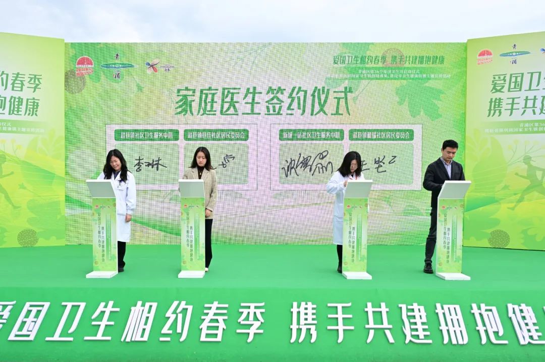 启动仪式上,来自赵巷镇社区卫生服务中心、新城一站社区卫生服务中心的家庭医生代表与居民代表签订服务协议,在居民的基本诊疗、公共卫生、健康宣教等方面发挥家庭医生的作用。活动发出“墩苗计划”青年倡议,引领青年干部主动投入卫生健康工作中,为巩固国家卫生镇创建成果、建设市卫生健康街镇贡献青春力量。活动邀请赵巷镇辖区不同行业企业代表来到现场并赠送健康书籍,以书为媒、传递健康理念,加快推进健康企业建设。
