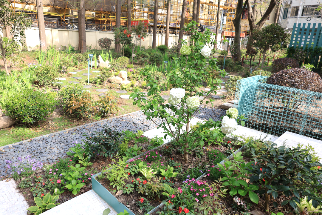 这派春日美景的背后是绿八社区4位热心志愿者无私的付出他们自掏腰包购买几百株苗木并在专业园艺师的指导下以法国印象派大师莫奈笔下的花园为设计蓝图将大家的构想变为了现实