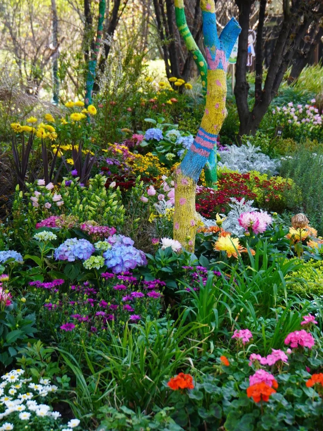 入口处花坛内红、黄、蓝、紫、粉等五彩斑斓的花朵争奇斗艳犹如大自然打翻的调色盘