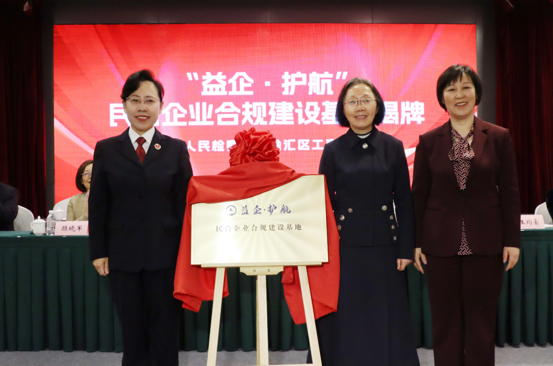 民营经济是推进中国式现代化的生力军,是高质量发展的重要基础。日前,上海市徐汇区人民检察院联合徐汇区工商业联合会正式揭牌成立“益企·护航”民营企业合规建设基地(以下简称“基地”)。上海市工商联党组成员、副主席杨茜,徐汇区委常委、统战部部长秦丽萍,徐汇区人民检察院党组书记、检察长朱庆华共同为基地揭牌。